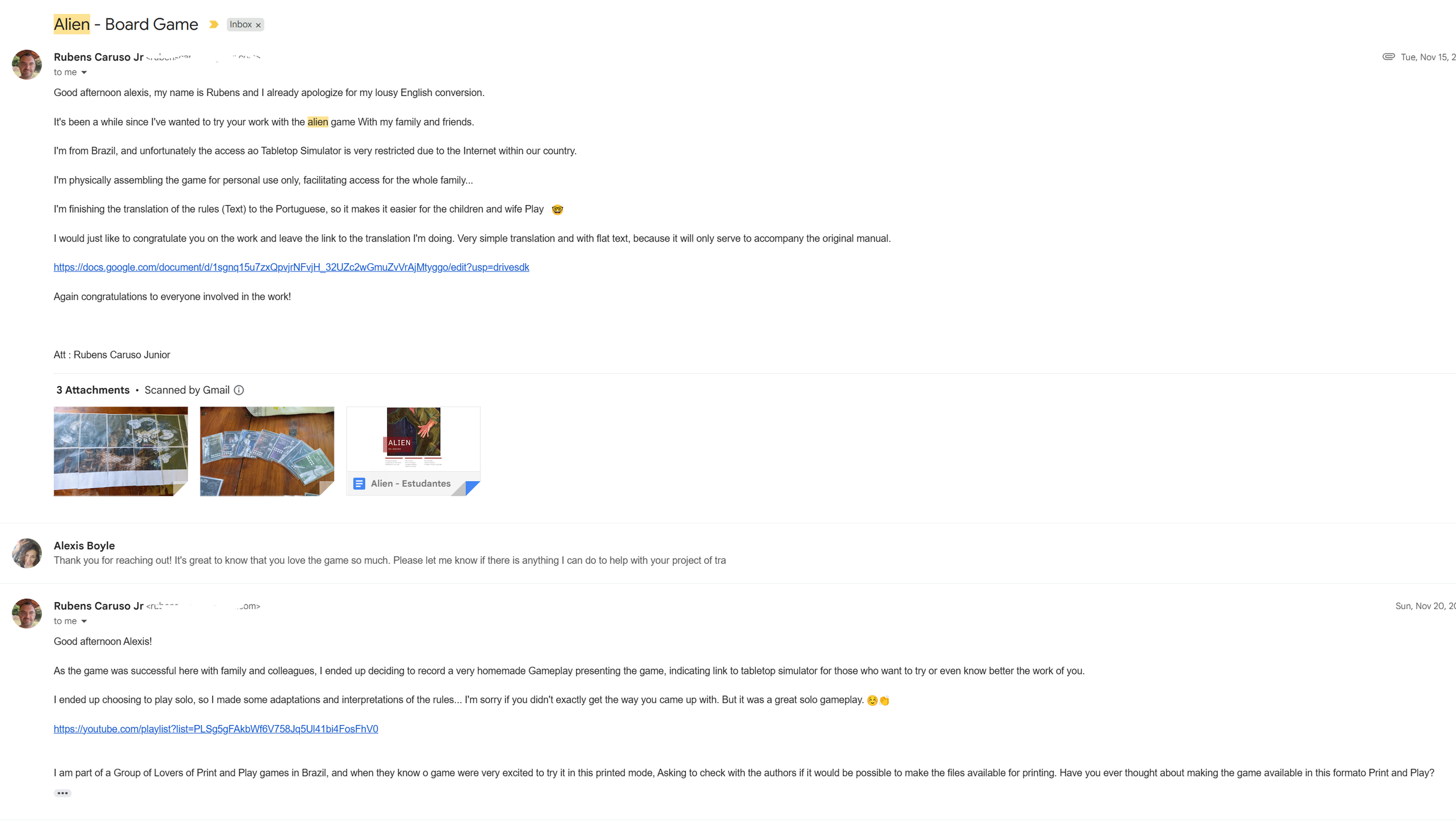 The game was loved so much that a player reached out to share their love and that they had translated the rule book and even printed out the game to play with family and friends!!