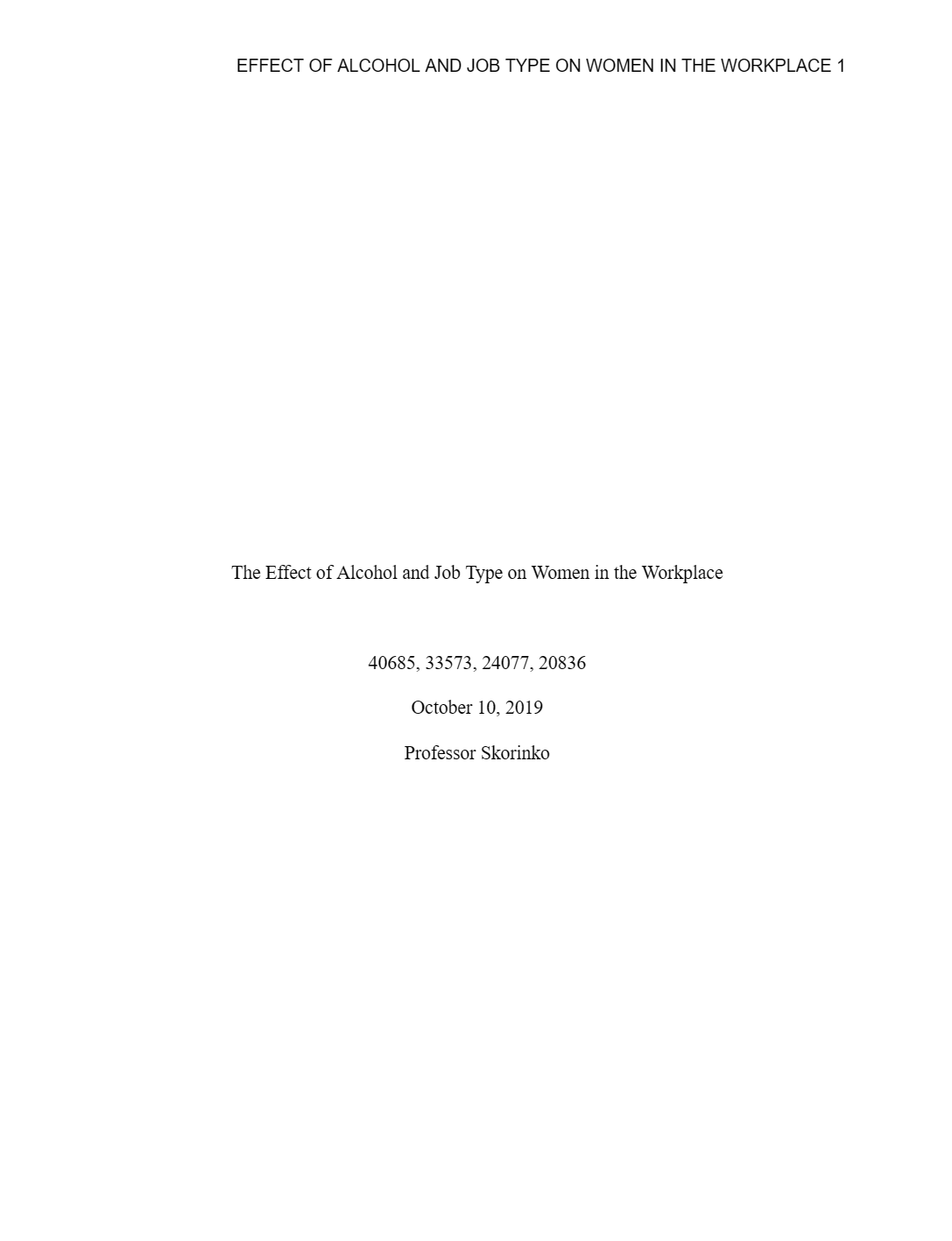 The Effect of Alcohol and Job Type on Women in the Workplace